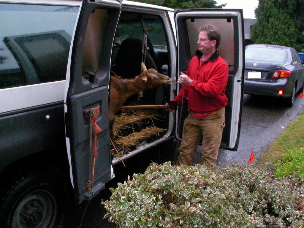 本來以為會是一台大卡車後面一打開就一堆羊,想不到原來羊是坐箱型車來的,只是這台箱型車的後座椅子都拆掉,裡面放著些草給牠們解饞。羊有三隻,兩公一母,據牧羊人說這樣他們比較無聊或害怕。